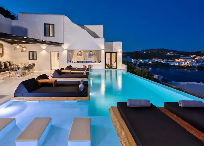 Psarou Black Villa se nachází ve městě Psarou a nabízí vnitřní dvorek s panoramatickým výhledem na Egejské moře. V ubytovacím zařízení je 5 ložnic a 5 koupelen.